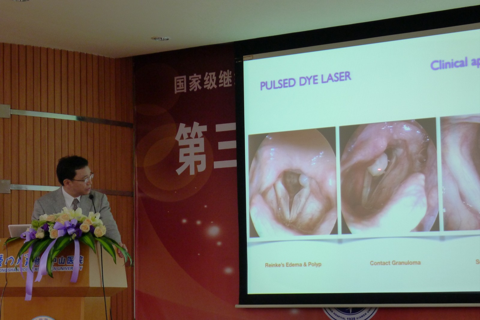 김형태 예송이비인후과 원장은 지난 8월 16일부터 18일까지 중국 상하이에서 개최된 '2013년 상하이국제이비인후과학회'에 초청, '후두질환의 새로운 수술법에 대한 임상결과'를 발표했다 김형태 원장은 ‘양성 후두질환에 PDL(펄스다이레이저) 수술을 시행했을 때 기존 후두 수술법과 비교해 수술시간과 병변에 미치는 영향, 회복속도 등 여러 가지 측면을 분석했으며, 양성 후두질환 치료에 안전하고 효과적인 수술법으로 잠재적인 이점과 장점을 확인했다. 특히 성대구증 환자 357례의 치료성적에서 78%의 높은 치료효과와 상처가 난 성대를 복원시키는데 매우 탁월한 효과를 나타내는 것으로 나타났다. 이번 임상적용은 지난 2005년부터 2011년 사이 예송이비인후과를 방문하고 PDL로 치료받은 794명의 환자를 대상으로 했다. 부분 마취가 가능한 수술이므로 노인환자와 심혈관계 이상이 있는 고령의 환자도 다수 포함됐다. 후두유두종, 성대형성장애, 후두육아종, 성대폴립, 모세관확장, 성대반흔, 성대구증 등 다양한 후두 질환에 시행된 수술로 예후를 관찰했다. PDL수술은 기존의 전신마취 수술이 아닌 후두내시경을 이용한 레이저수술이다. 가늘고 구부러지는 후두전자내시경을 코를 통해 넣은 뒤 전자 내시경 채널에 가느다란 광섬유형 케이블을 넣어 레이저를 쏘면서 수술하는 방법이다. 발표 내용에 의하면 'PDL의 광역학적 특성상 성대혈관만을 정확하고 선택적으로 응고시켜 병변만을 파괴시키기 때문에 무혈수술이 가능했으며 주변 정상조직에 상처를 가하지 않기 때문에 성대점막을 보호해 음성 보존의 효과가 뛰어났음'을 알 수 있었다. 수술 시간은 부분마취를 통해 20분 내외로 짧았으며, 회복 기간이 빠른 장점이 있다. 예송이비인후과 김형태 원장은 "세계적인 이비인후과 전문의들이 참석한 자리에서 한국의 목소리 전문병원을 대표해 초청 발표하게 되어 매우 기쁘게 생각한다”며, “PDL수술의 긍정적인 임상연구 결과를 바탕으로 후두질환 치료에 더 많이 적용될 수 있도록 연구를 지속한다면, 가까운 미래에는 이비인후과 영역에서 후두학적 발전에 크게 기여할 수 있게 될 것이다.”고 말했다.
