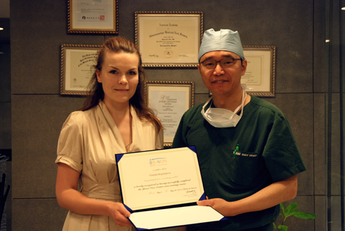 러시아 의료연수생 지나이다 보골레포바 (이하 지나이다)는 예송이비인후과 음성센터(이하 예송음성센터)에서 단기 의료 연수를 받았습니다. 지나이다씨는 튜멘 국립 의료 아카데미를 졸업해 FCI 과학응용연구센터에서 이비인후과 석사 학위를 취득했으며 음성언어치료, 음성분석 및 아동언어장애 등 비인후과에 많은 관심을 갖고 있었습니다. 현재 볼쇼이극장 내 클리닉에서 이비인후과 의사 및 언어치료사로 재직하면서 배우와 가수들의 음성치료를 담당하고 있으며, 동시에 SJSC 유럽 의학 센터 이비인후과에 재직 중입니다. 지나이다씨는 "예송음성센터에서만 진행하는 비절개 음성여성화 수술, 근전도를 이용하는 경피적성대성형술 및 보톡스 주입에 관심이 많았는데, 연수기간 동안 직접 참관할 수 있게 되어 기쁘다."고 전했습니다. 또한 "러시아에서는 성대주입성형술시 전신마취로 하지만 예송음성센터에서는 근전도를 이용한 수술이라 부분마취로 시행해 환자들에게 부상을 주는 가능성을 낮출 수 있다."며 "시술하는 것은 쉬워 보이지만, 숙달되지 않으면 할 수 없는 고도의 섬세한 의료기술이 인상 깊었다."라고 덧붙였습니다. 이번 연수를 통해 예송음성센터는 한국의 선진보건의료기술과 서비스를 알리고 한국 의료수준의국제적 인지도 제고하여 현지 의료수준 향상 및 네트워크가 더 확대될 것으로 기대됩니다.