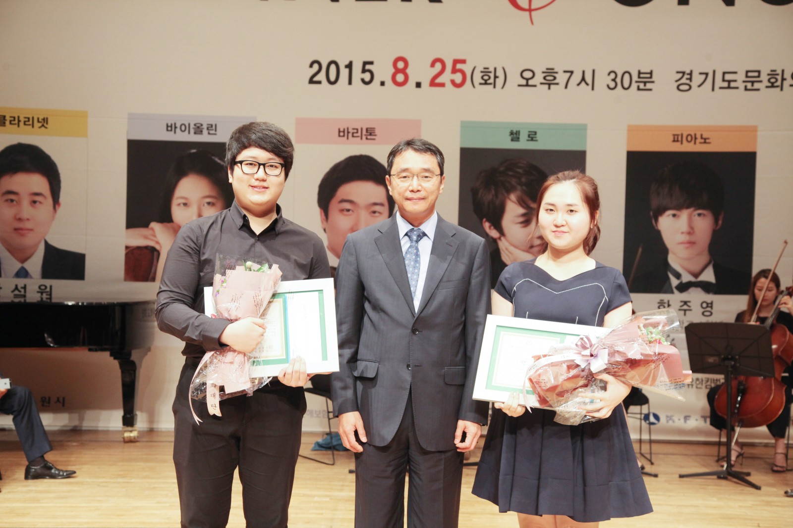 지난 8월 25일 경기도 문화의 전당에서 개최된 제24회 성정전국음악 콩쿠르 예송음악상 부문에 강수연(부산예고)과, 오세원(서울예고)이 수상했습니다. 성정문화재단이 주최하고 문화체육관광부, 수원시가 후원하는 이번 콩쿠르는 공연예술 경연대회 평가 4년 연속(2008-2011) A등급에 오른 행사로써 공신력 있는 콩쿠르로 자리매김하고 있습니다. 8일간 진행된 이번 행사는 1032명의 참가자가 경합을 벌여 작년보다 높은 경쟁률을 보였습니다. 예송이비인후과 음성센터(이하, 예송음성센터)는 음악문화예술 발전에 기여하고자 지난 2009년부터 성정전국음악 콩쿠르에 ‘예송음악상’을 제정하고 성악고등부문 수상자에게 예송장학금을 수여하고 있습니다. 예송음성센터 김형태 대표원장은 수상자들에게 “예송음악상의 수상을 계기로 국제적인 성악가로발전하는 모멘텀이 될 수 있기를 바라며, 앞날에 큰 발전이 있기를 기원한다”고 전했습니다