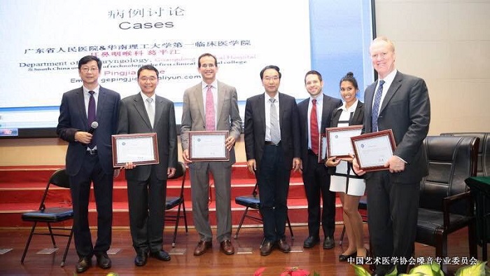 예송이비인후과 음성센터(이하, 예송음성센터)가 지난 10월 24일부터 1박 2일간 북경에서 개최 된 제1회 북경 공연 예술 발성 포럼에 초청 연자로 참여했습니다. 이번 포럼은 전 세계적으로 이비인후과 분야에 유수한 의사들과 음성치료사, 전문음성사용자 등이 참석했으며 예송음성센터는 중국 남경(南京)에 있는 남경동인예송음성센터와 함께 keynote 연자로 초청받아 포럼에 참여했습니다. 포럼 첫째 날인 24일에는 미국, 중국 국적의 의사들과 함께 수술영상을 보며 case토론이 진행됐습니다. 각 질병에 관한 다양한 수술법에 대한 공유의 자리가 마련됐으며 예송음성센터의 치료 기술법 또한 좋은 반응을 얻었습니다. 포럼 둘째 날인 25일에는 예송음성센터의 김형태원장이 ‘예송’의 특화된 의료기술과 음성 검사 커리큘럼을 소개하였으며 강의 내용은 음성에 관한 진단, 치료, 재활 등 다양한 보건 분야로 나누어 진행이 됐으며 포럼에 참석한 수강생들에게 큰 호응을 얻었습니다. 이번 포럼으로 예송음성센터는 중국의료진들과 공연예술인들로부터 앞선 의학적 기술과 치료방법에 많은 관심을 받았으며, 이를 통해 보다 더 넓은 중국에 예송음성센터의 높은 의료수준을 알리는데 초석을 다졌습니다.