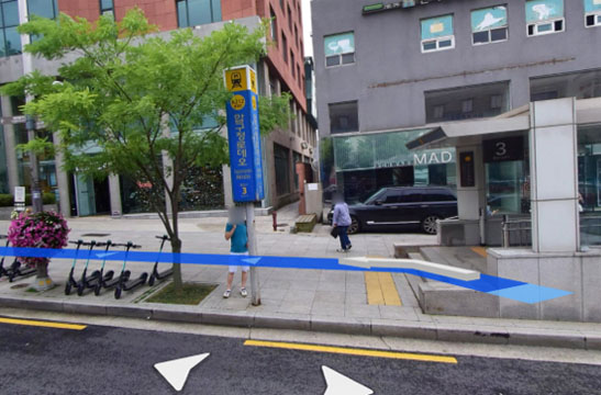 2 쭉 직진해서 돌체앤가바나 앞 횡단보도를 지나세요.